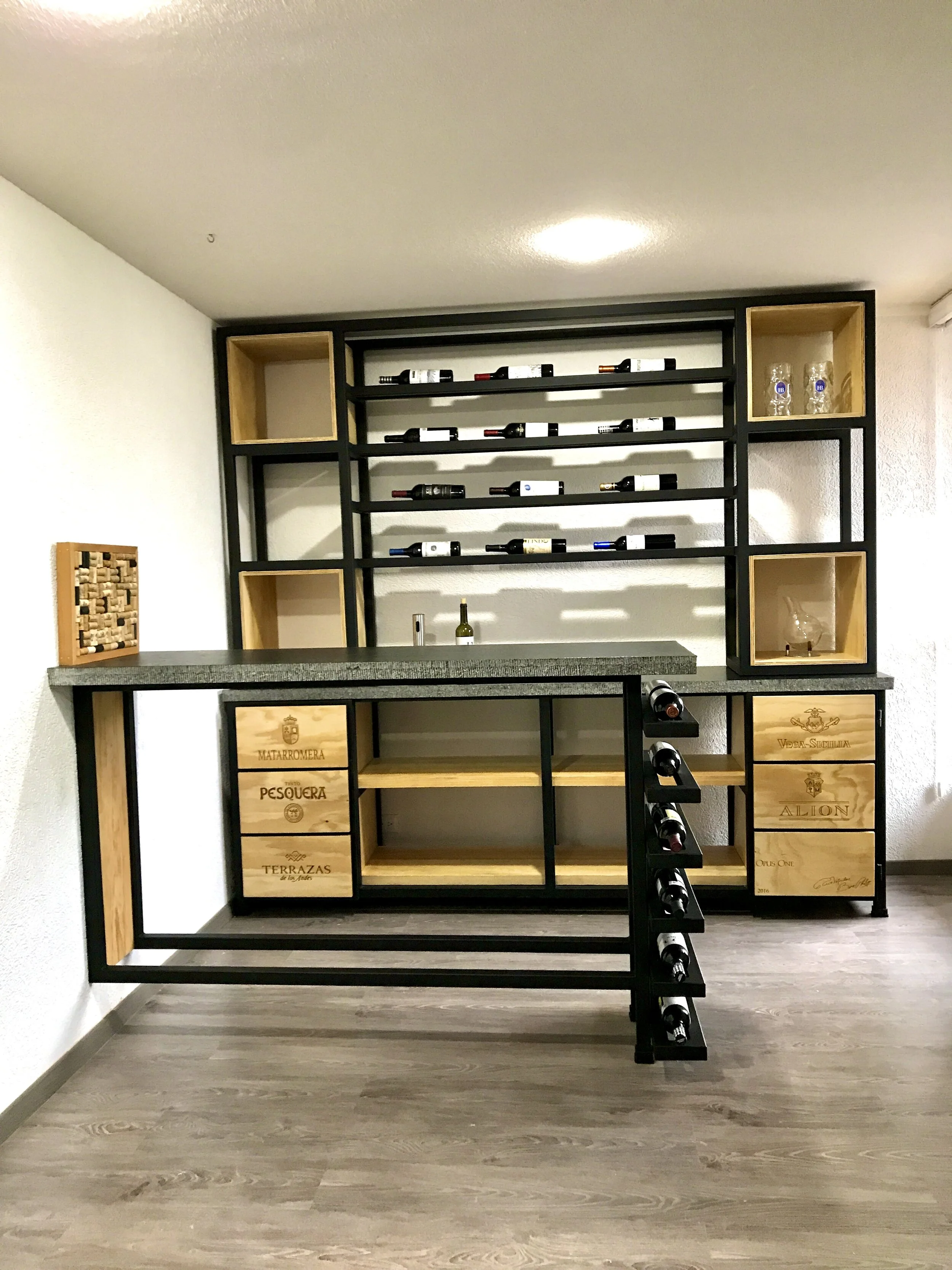 Barra y contrabarra de bar PTR, granito y madera, en Contreras, CDMX